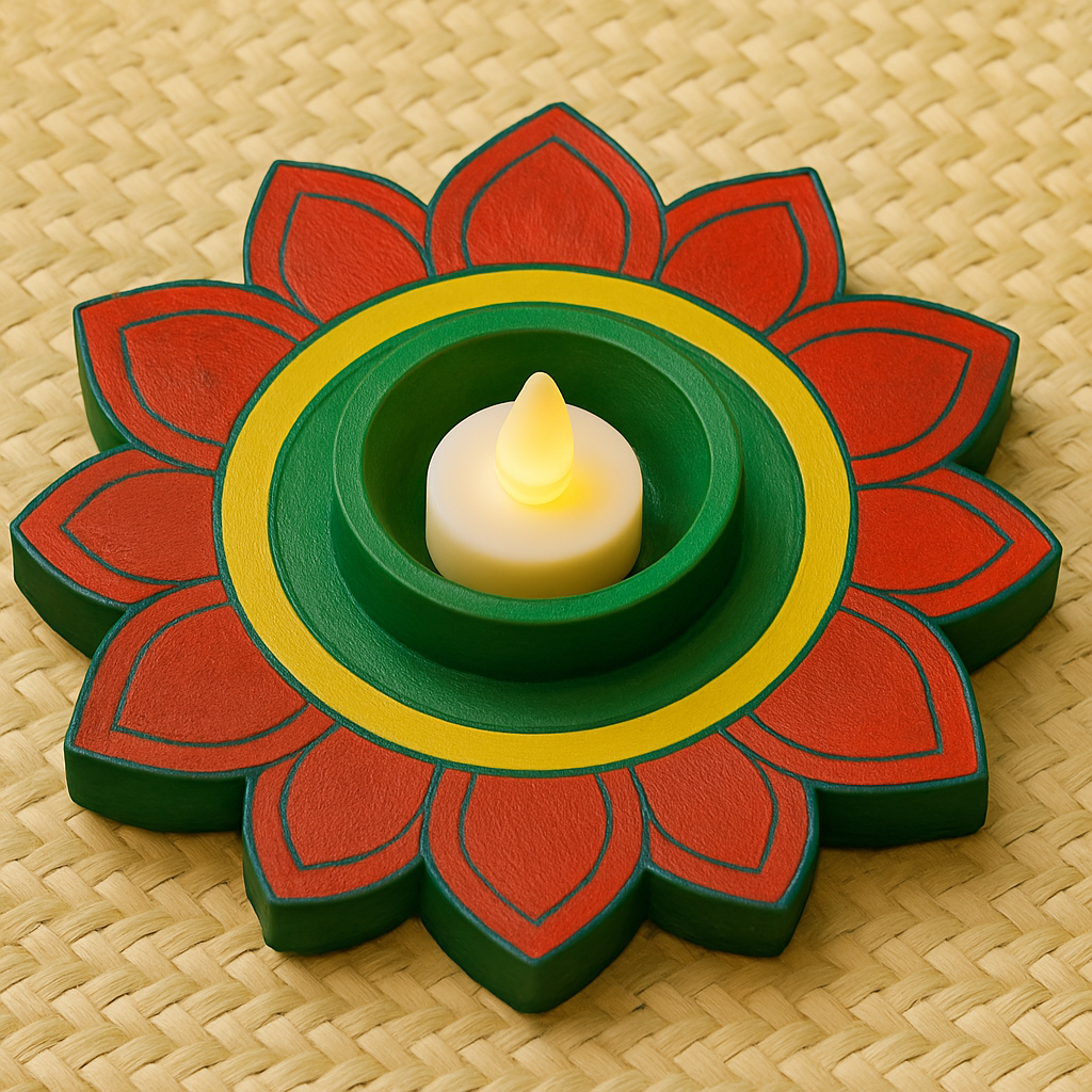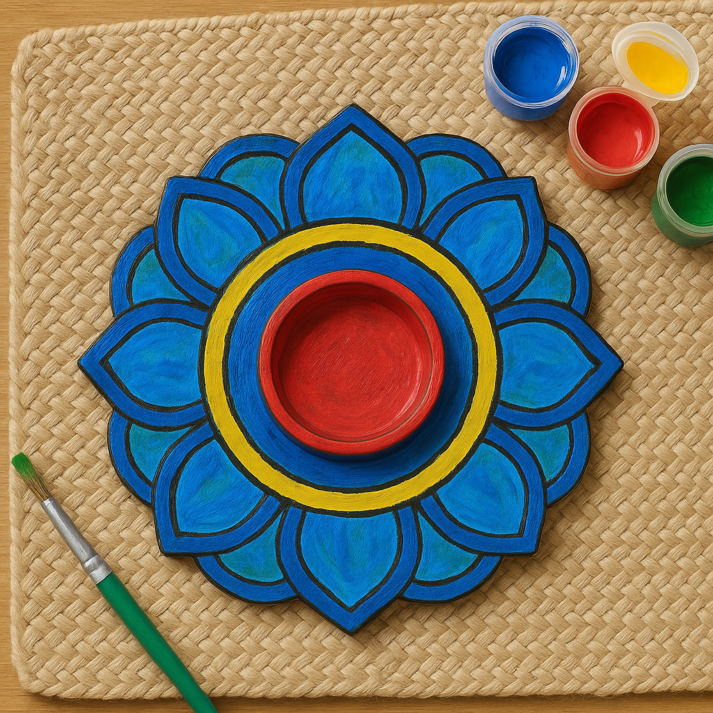 Each piece is 3D-printed using eco-conscious materials and arrives paint-ready—just add your favorite colors! Whether used as a candle holder, festive tray, or art project centerpiece, the Rangoli Glow Plate helps children explore cultural traditions through creativity and play.